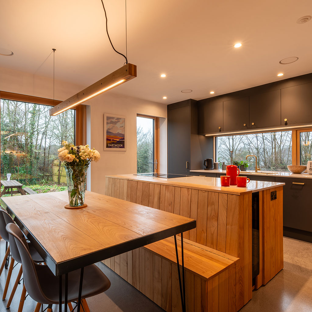 Designed by Daniel Stewart, of ALA Architects Ltd, this is a contemporary new build, Passivhaus family home, completed in 2024. It is constructed using ICF by R-Wall, it has achieved the AECB CarbonLite New Build Standard and will be certified to Passivhaus Plus standard.https://ala-architecture.co.uk/portfolio/passivhaus-in-wembury/